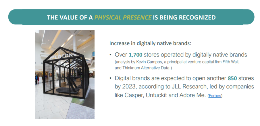 추가적으로 디지털 브랜드 또한 물리적인 장소에 스토어를 입점하는 전략을 선택하고 있다.