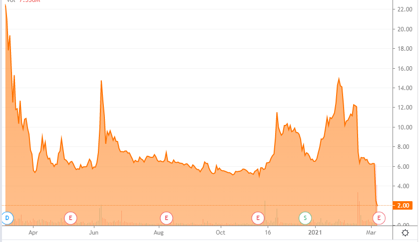 이로 인해 최근 주가는 $2 수준까지 떨어지고 말았다. Chapter11에 대한 불확실성은 회사를 상장폐지로 이끌 수도 있기 때문이다.
