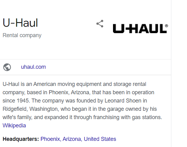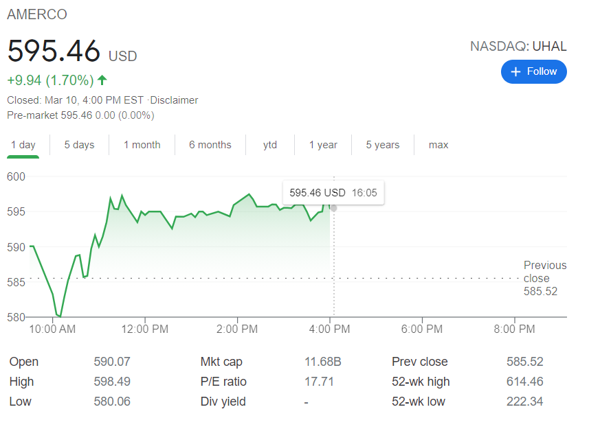 다만 U-Haul은 직접 상장되어 있지는 않고, Aemrco라는 모회사에 의해 간접상장되어 있는 상태이다.