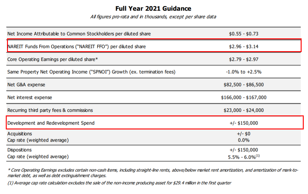 리젠시센터(REG)의 2021년 주당 FFO 가이던스는 $2.96-3.14 수준으로 2019년 $3.89를 기록했던 것에 비해 높지 않은 수준이다. 리젠시센터(REG) 역시 2021년 내에 주가 회복은 쉽지 않다고 예상하고 있는 듯하다. 다만 이는 2022년부터 (코로나19가 2021년 내에 해결된다는 전제하에) 급속하게 증가할 것으로 예상된다.