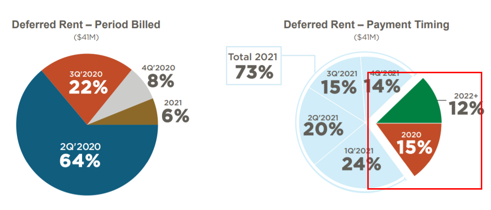 코로나19로 인한 임대료 이연은 2020년 2분기에 가장 컸던 것으로 보인다. 이런 이연분은 2021년동안 70% 이상 거두어들일 것으로 예상된다. 물론 예상이다. 현재는 이렇게 이연분에 대한 지급을 합의했지만 코로나19상황 진행에 따라 언제든지 변할 수 있다.