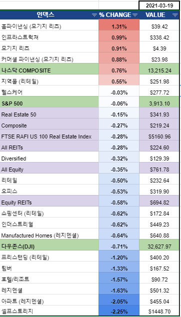 미국 리츠 시장(2021.03.30) - 미국 호텔리츠 상승/사이먼프로퍼티 1분기 배당 (0) | 2021.03.31 |