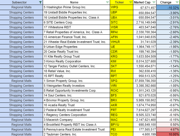 - 아이러니하게도, 작년 2020년 11월, 12월 Chapter 11 Filing 이후, 부채조정을 진행했던 펜실베니아 리얼에스테이트(PREIT, PEI)는 5% 가량 상승하는 변동성을 보임