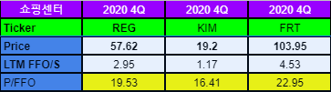 킴코 리얼티(KIM) Factsheet 1. 킴코 리얼티(KIM)는 시총 약 $8bn 시총 2위 규모의 쇼핑센터 리츠이다. 2. 킴코 리얼티(KIM)는 코로나19 이전 주가로 대부분 회복하였다. 3. 킴코 리얼티(KIM)는 P/FFO 13x 수준..