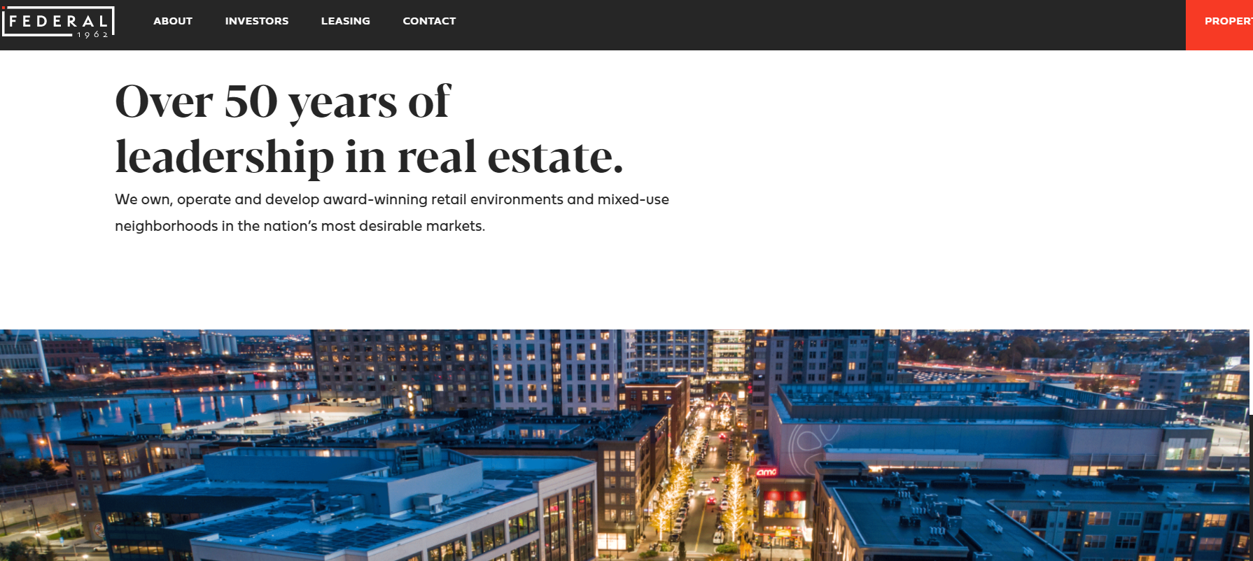 페더럴 리얼티(Federal Realty, FRT)는 1962년 설립된 가장 오래된 리츠 중 하나로, 메인 자간이 쇼핑센터, 커뮤니티 센터 등인 리테일 리츠이다.