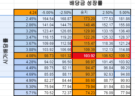4. 시가배당률 약 3.8% 수준 가정시 약 $115~120 주가가 기대된다