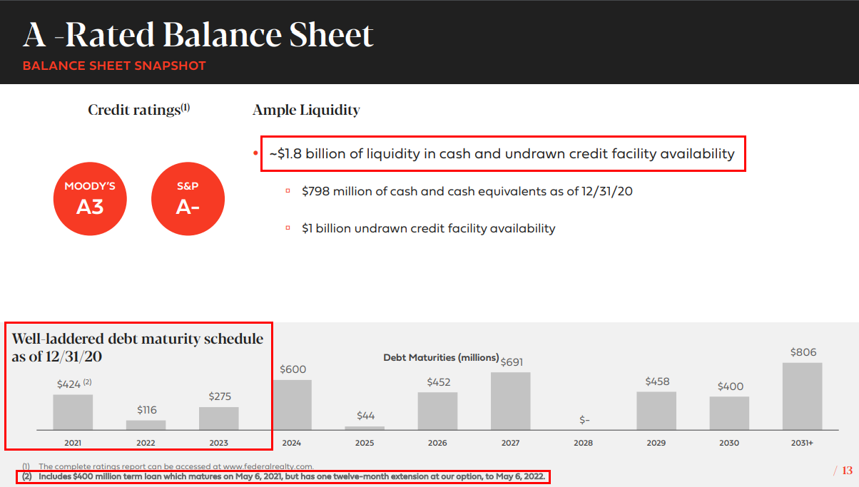 2. 페더럴 리얼티(FRT)는 긴 역사를 높은 신용등급의 리츠이다.