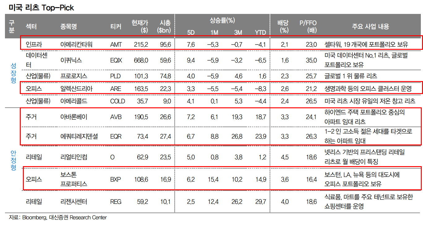 본 포스트는 대신증권에서 발간하는 글로벌 주요 리츠 동향에 대한 참조 및 리뷰를 통해 작성되었습니다.