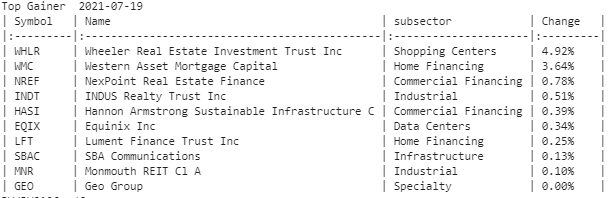 최근 1개월 섹터별 미국 리츠 수익률 비교 - ARE(알렉산더 리얼티), COLD(아메리콜드) 등 (0) | 2021.08.27 |
