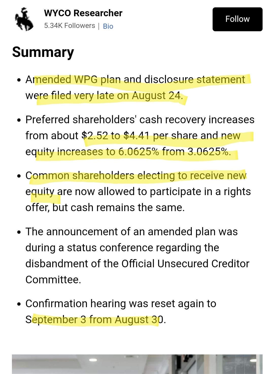 8월 24일 지속적인 협상 끝에 보통주주 및 우선주주의 신규 청약 발행 권한이 향샹되었다. 참고로 보통주주는 Cash로 받을 지 신규 발행주에 대해 청약할지에 대해 선택할 수 있었다