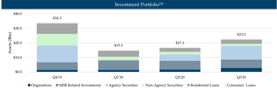 시총 4위정도의 규모($4.06bn)의 NRZ(뉴레지덴셜 인베스트먼트)라는 모기지 리츠의 포트폴리오를 살펴보면, 위에 말한대로 Agency, Non-agency, MSR, Origination 등의 종류가 있는 것을 알 수 있다.