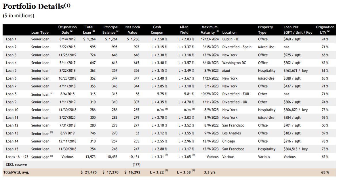 시총 5위 규모($3.95 bn)의 블랙스톤 모기지 트러스(BXMT, Blackstone Mortgage Trust)의 포트폴리오 구성은 딱 하나다. Senior Loan(선순위대출)