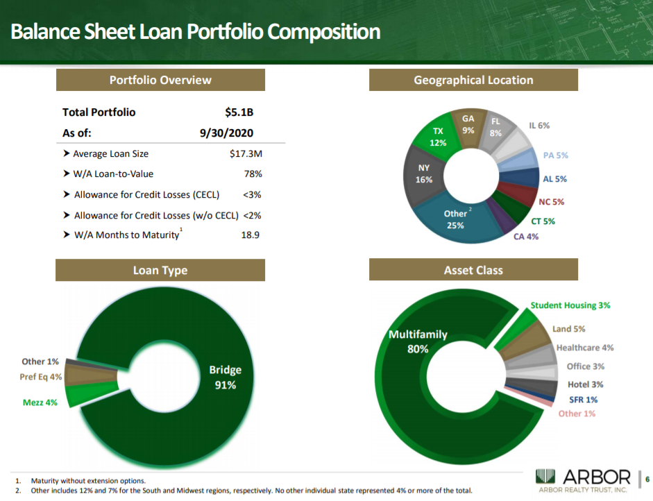 추가적으로 아보 리얼티 트러스트(ABR)는 이렇게 실행한 대출을 팔고 MSR(Mortage Servicing Right)을 보유하는 방법으로 수수료를 수취한다. 또한 일부 대출은 Balance Sheet에 직접 보유하여 투자를 한다. 위에 포트폴리오 구성을 보면 아보 리얼티 트러스트(ABR)은 브릿지론에 대해서 많은 양으로 On-balance sheet에 보유하여 투자를 하는 것으로 보인다.