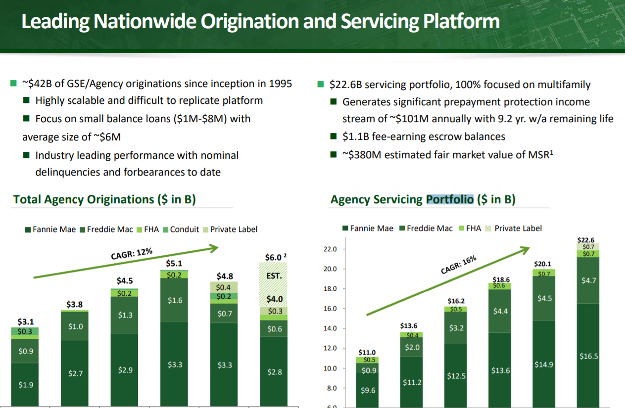 미국 모기지 리츠 시장 시총 8위($1.78B)의 아보 리얼티 트러스트(ABR; Arbor Realty Trust)는 어떨까? 먼저 Servicing 포트폴리오가 눈에 띈다. 우리가 방금 직전 MFA 파이낸셜을 통해 배웠던 MSR(Mortgage Servicing Right)과 같이 Servicing을 통해 매출을 올리고 있는 것으로 보인다.