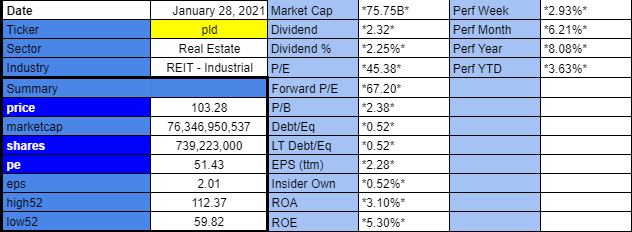 프롤로지스(Prologis ; PLD) 2020년 4분기 실적 발표