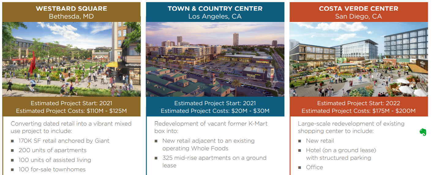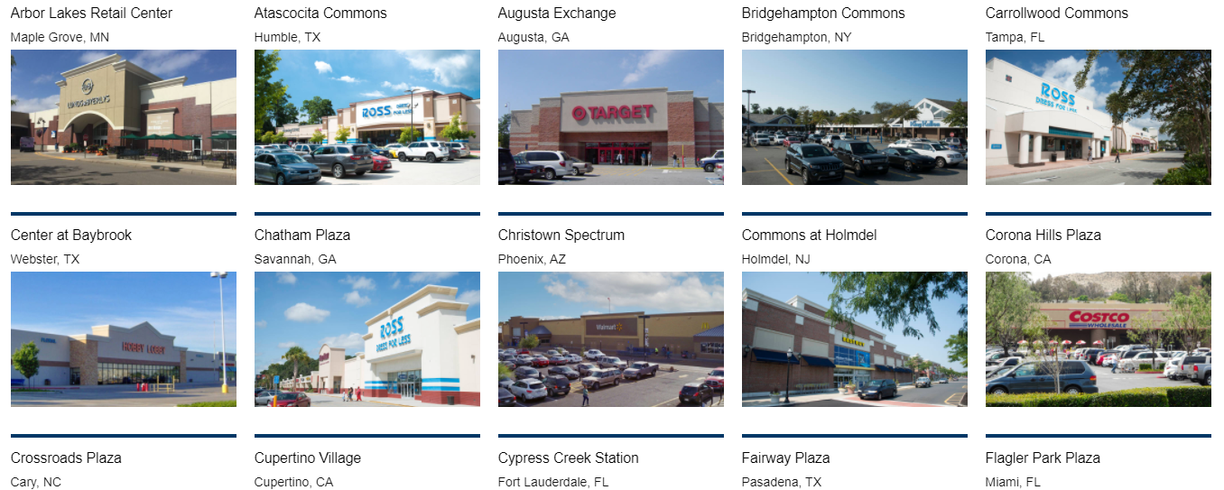 킴코리얼티(KIM) 역시 쇼핑센터 포트폴리오를 보유하고 있다. 외부에 상점이 늘어져 있는 모양의 쇼핑센터와 플라자들이 바로 이런 킴코리얼티(KIM), 리젠시센터(REG) 등의 쇼핑센터 리츠들이 보유한 자산들이다