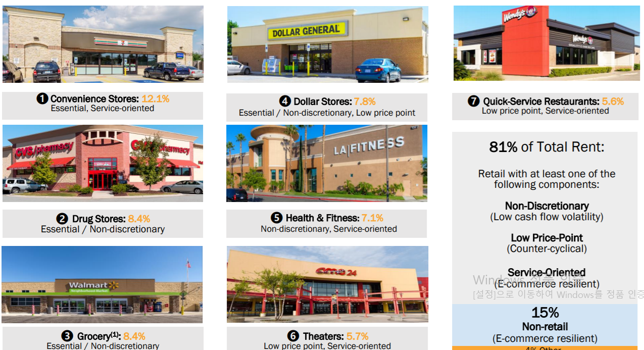 - 넷리스(Net Lease) 리츠는 전통적으로 굉장히 안정적이라고 여겨진다. 다만 리테일 사업 자체가 무너지면 위험할 수 있다.