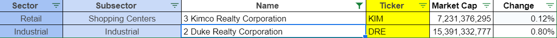 듀크 리얼티(DRE)와 킴코 리얼티(KIM)는 각각 물류(인더스트리얼)과 리테일 쇼핑센터 분야에서 시총 2위를 달리고 있는 대형 리츠 중 하나이다.