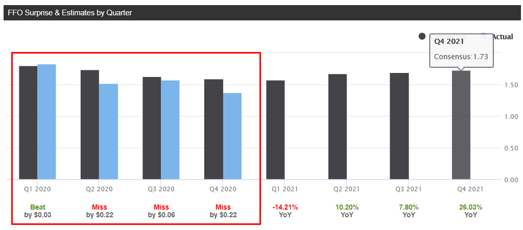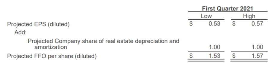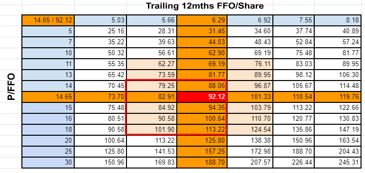 - P/FFO 은 약 14.6x 수준으로 평균보다 낮은 수준이다. 2021년 주당 FFO 감소 예상하더라도 가격 범위는 $80 ~ 115 수준은 이상은 되지 않을까 싶다