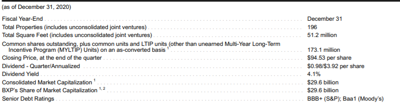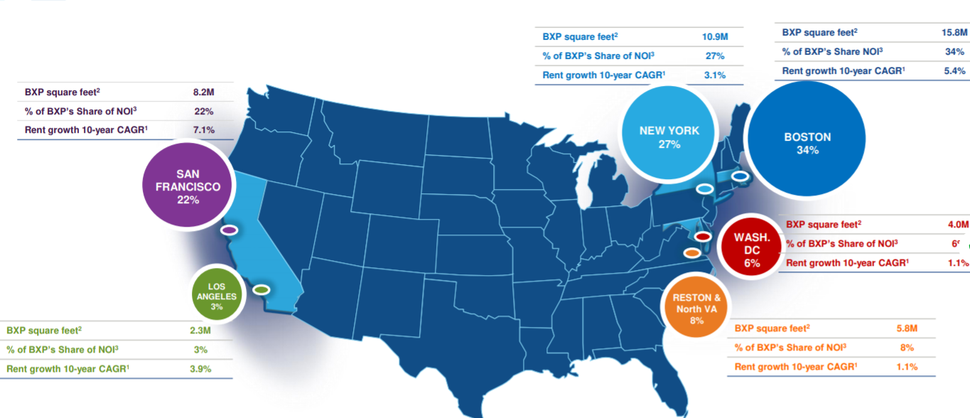 보스펀프로퍼티(BXP)는 샌프란시스코, 로스앤젤로스, 뉴욕, 워싱턴DC 등 주요 도시에 오피스를 보유하고 있는 리츠이다