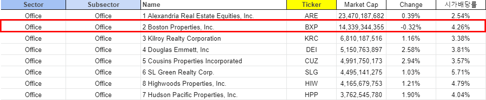 - 미국 오피스 리츠 시총 2위 수준의 오피스 리츠의 전통인 보스턴프로퍼티스(BXP)