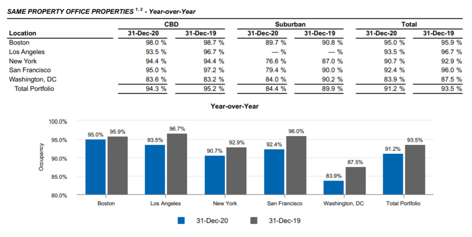 확실히 보스턴 프로퍼티(BXP)에게 2020년은 계속해서 어닝 Shock을 낸 힘든 한 해였다.